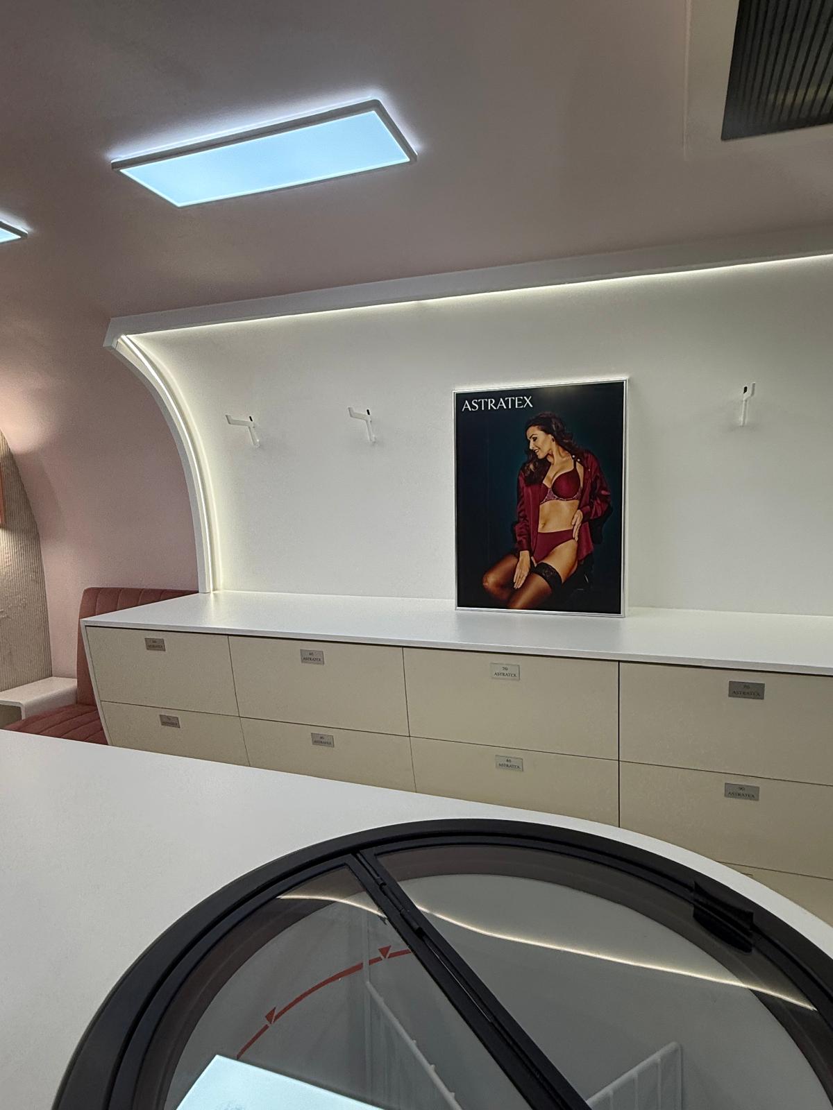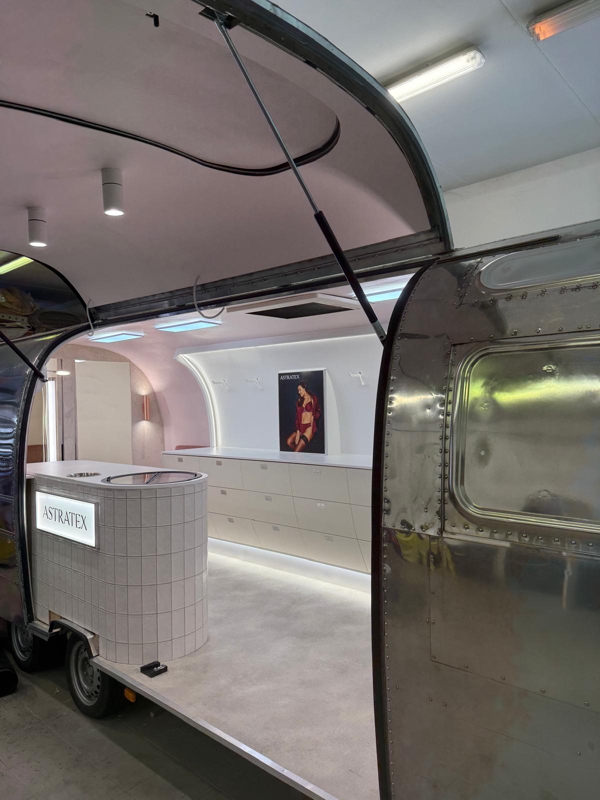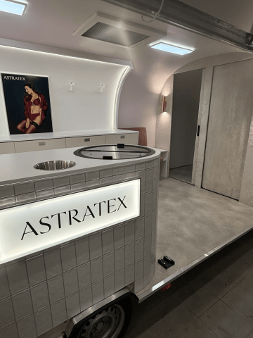 Pro značku Astratex jsme vytvořili moderní mobilní showroom, který spojuje elegantní design s funkčností.