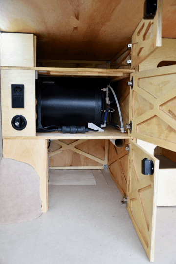 Camper je osazen pokročilým systémem filtrace vody. Ta je po použití vyčištěna a vrácena zpět do oběhu. Dlouhým cestám tedy nic nebrání.