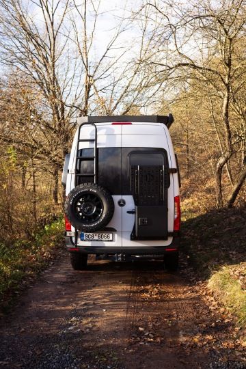 - Držák rezervního kola a žebřík